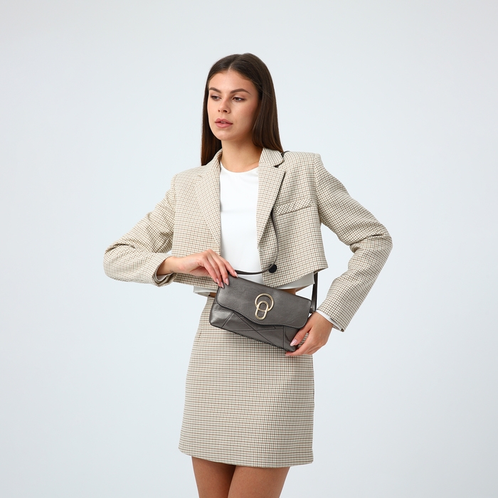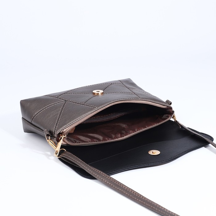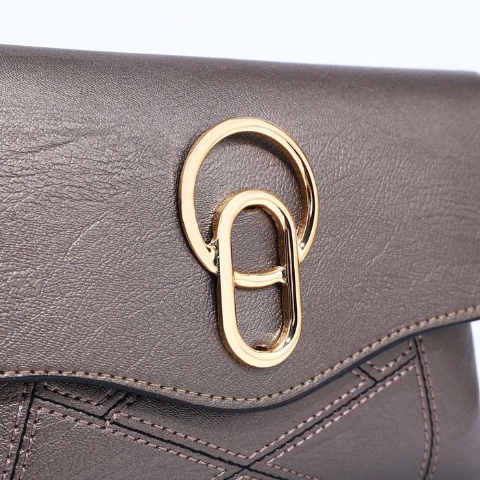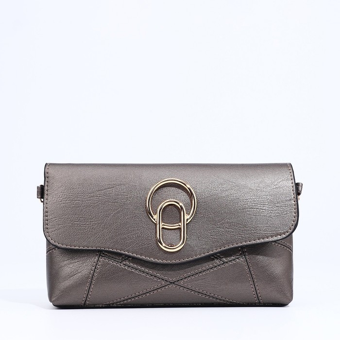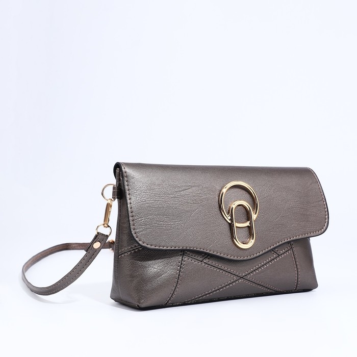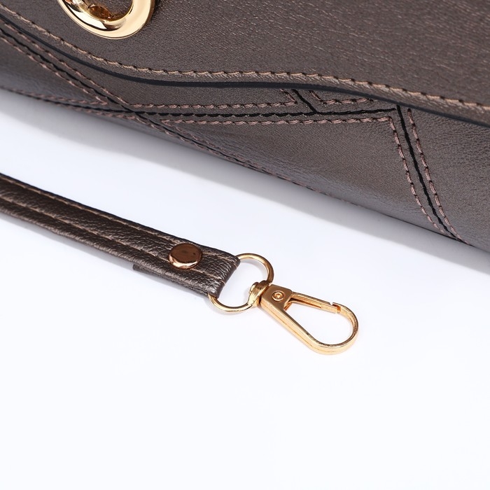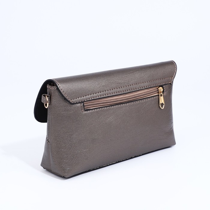 Сумка-клатч на магните, длинный ремень, цвет бронзовый