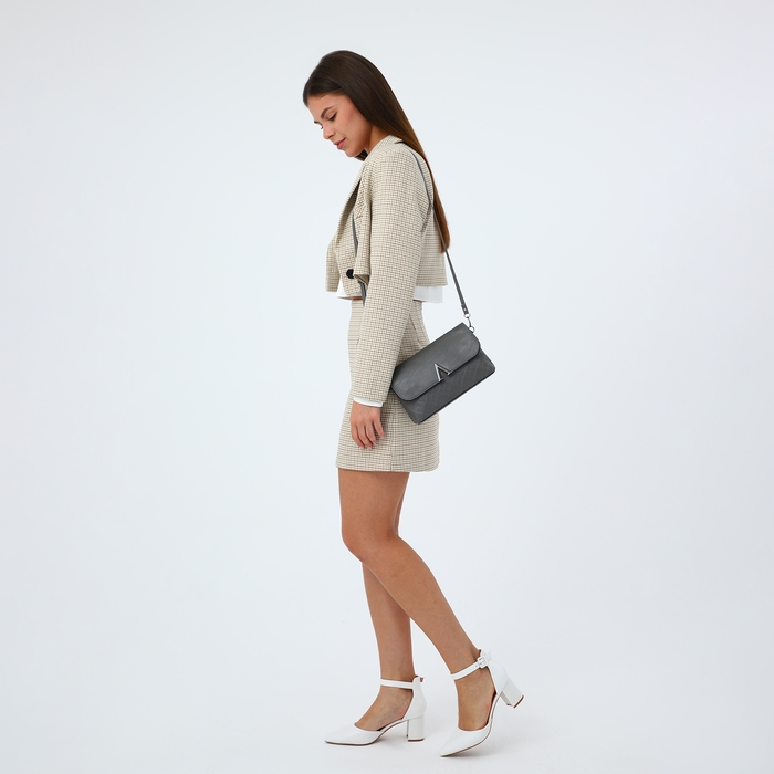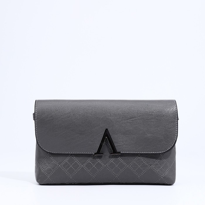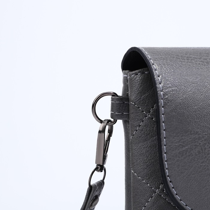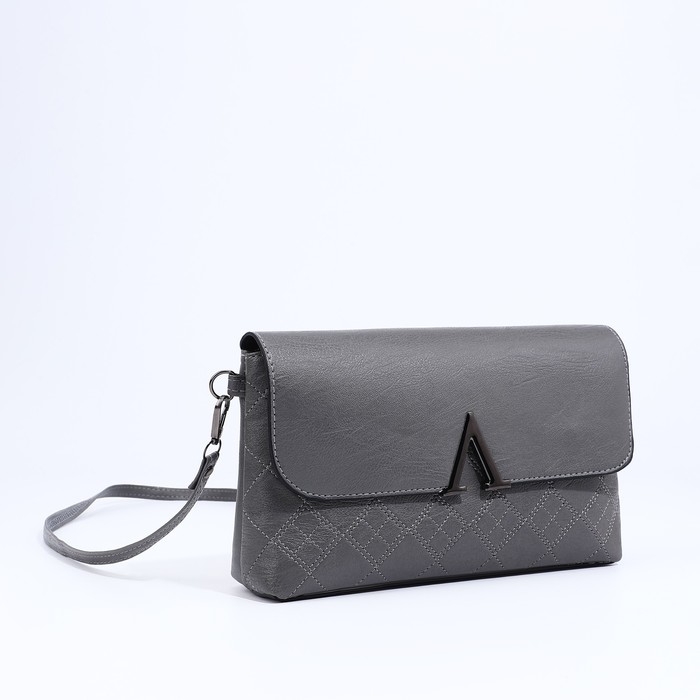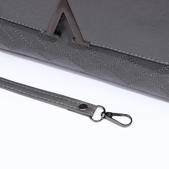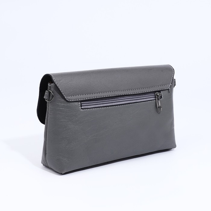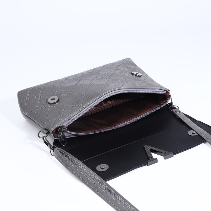 Сумка-клатч на магните, длинный ремень, цвет серый