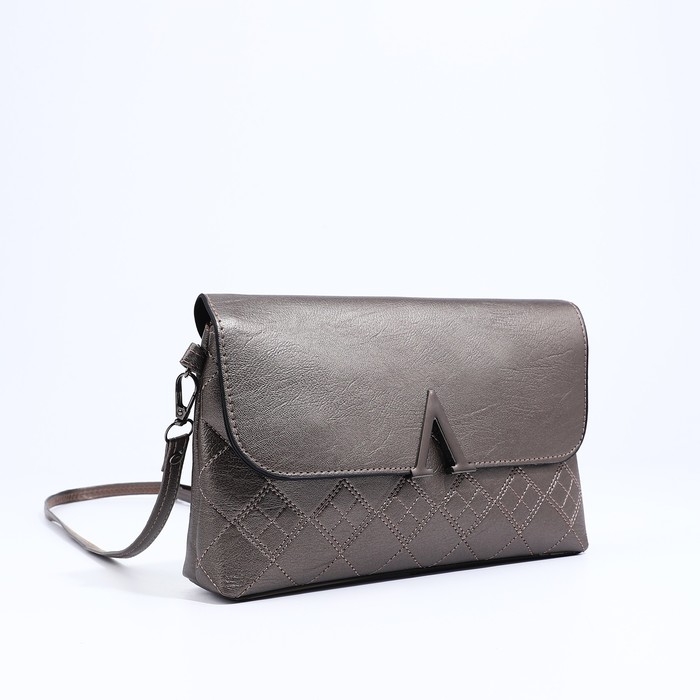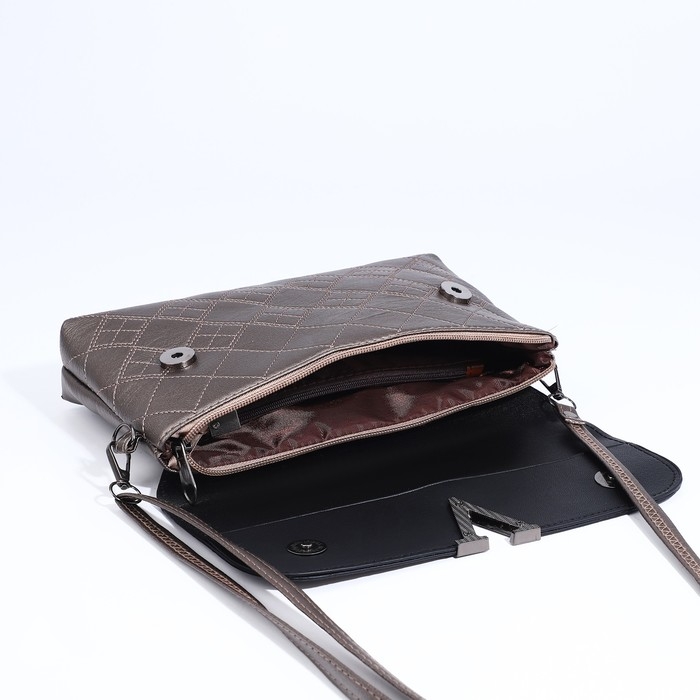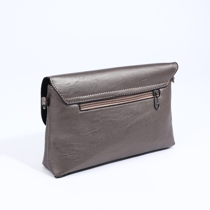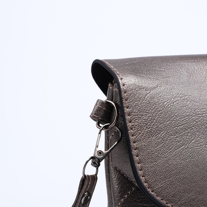 Сумка-клатч на магните, длинный ремень, цвет бронзовый