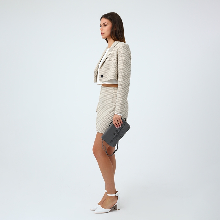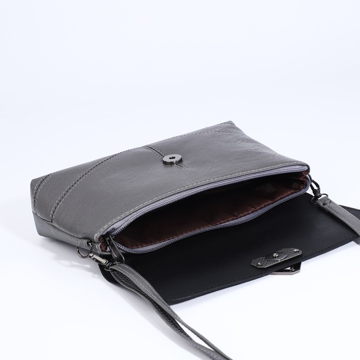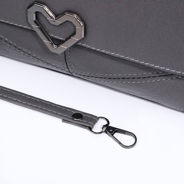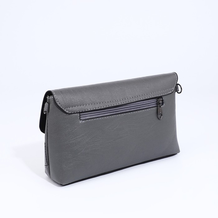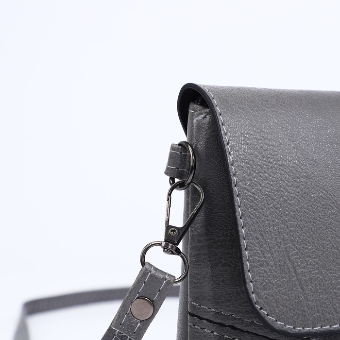 Сумка-клатч на магните, длинный ремень, цвет серый
