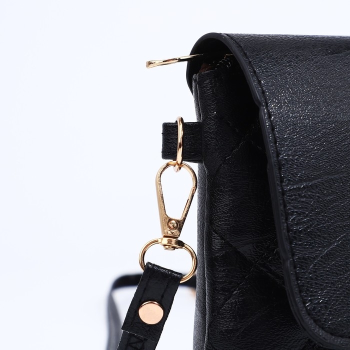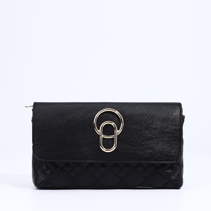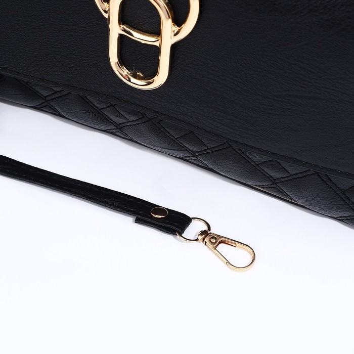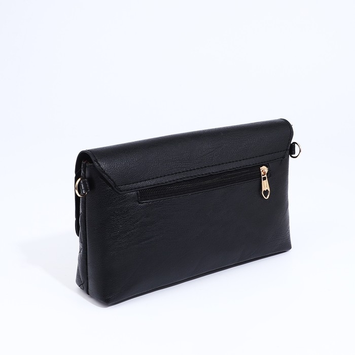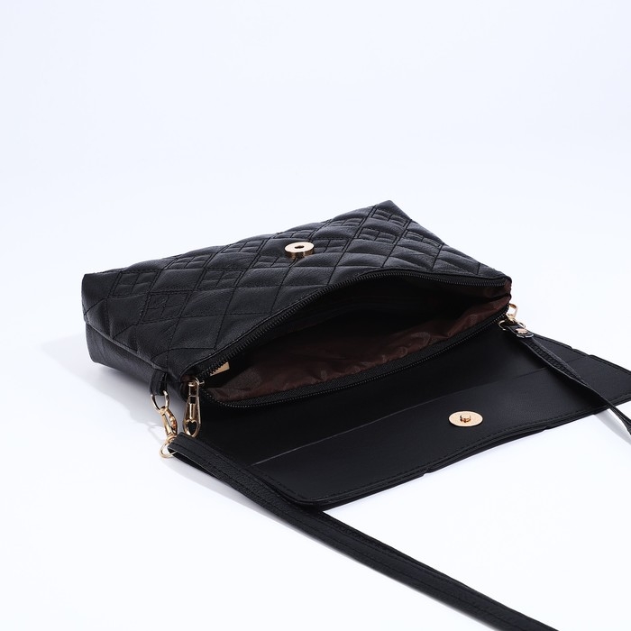 Сумка-клатч на магните, длинный ремень, цвет чёрный