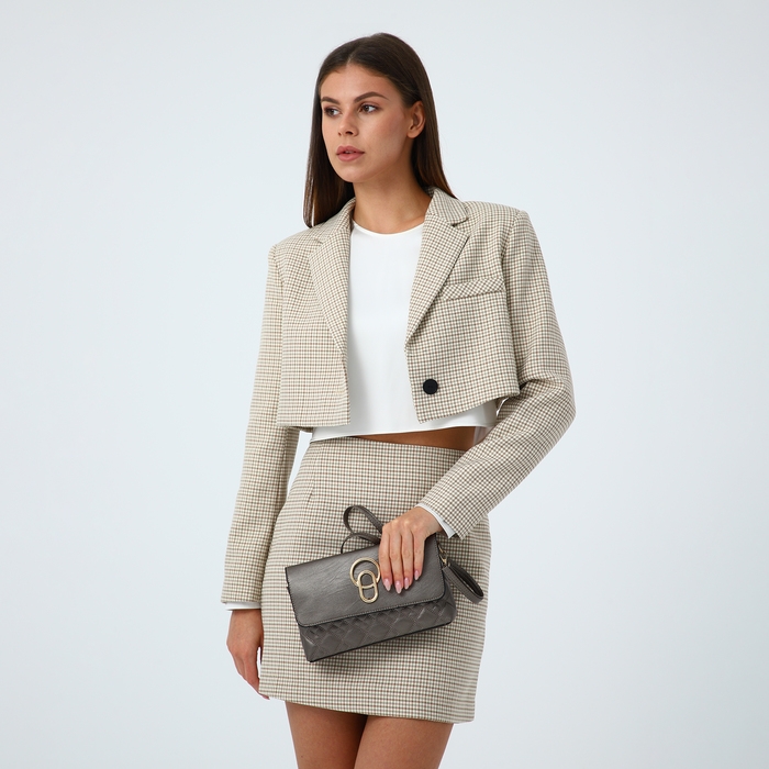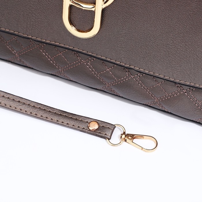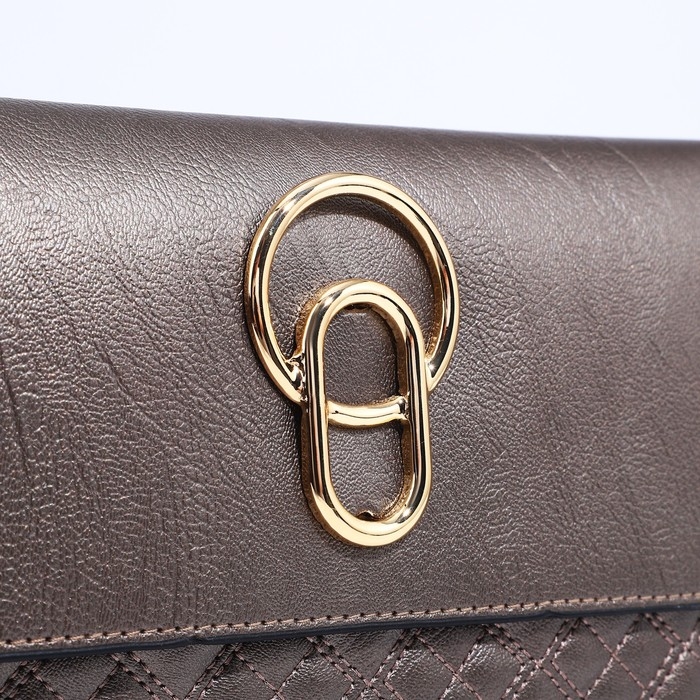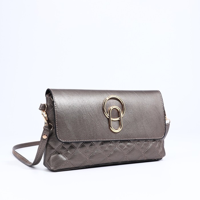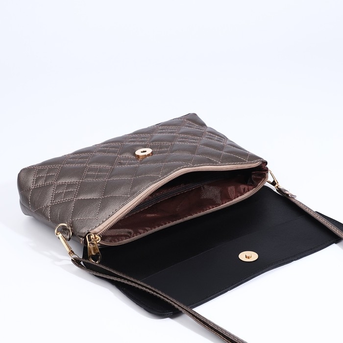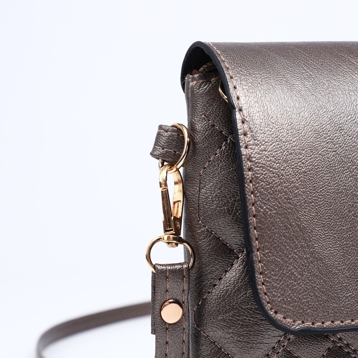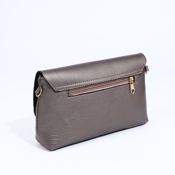 Сумка-клатч на магните, длинный ремень, цвет бронзовый