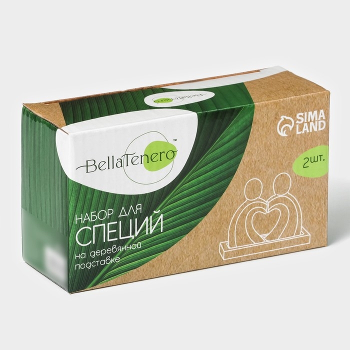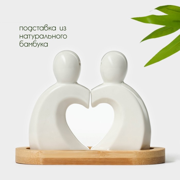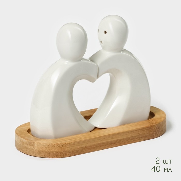 Набор фарфоровый для специй на бамбуковой подставке BellaTenero «Влюбленность», 2 предмета: солонка 40 мл, перечница 40 мл, цвет белый