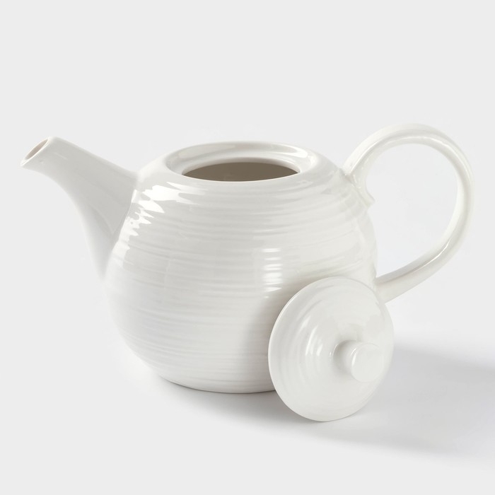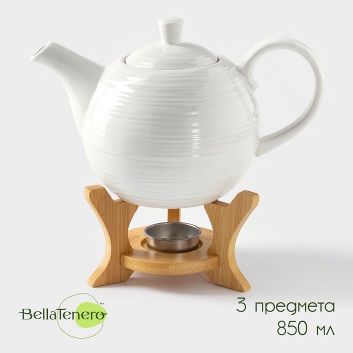 Чайник фарфоровый заварочный с подогревом на бамбуковой подставке BellaTenero «Полосы», 850 мл, цвет белый