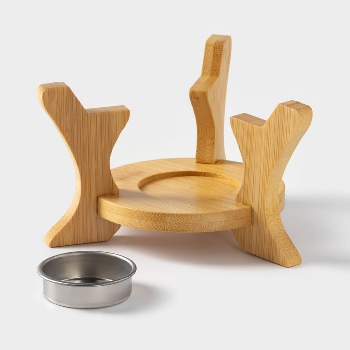 Изделие дополняет устойчивая бамбуковая подставка и небольшая ёмкость для свечки.