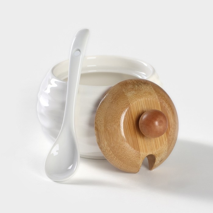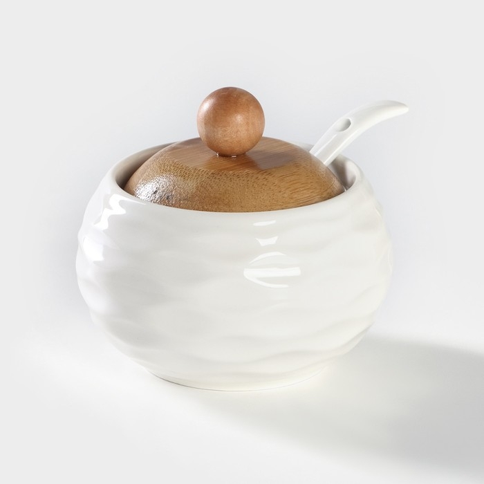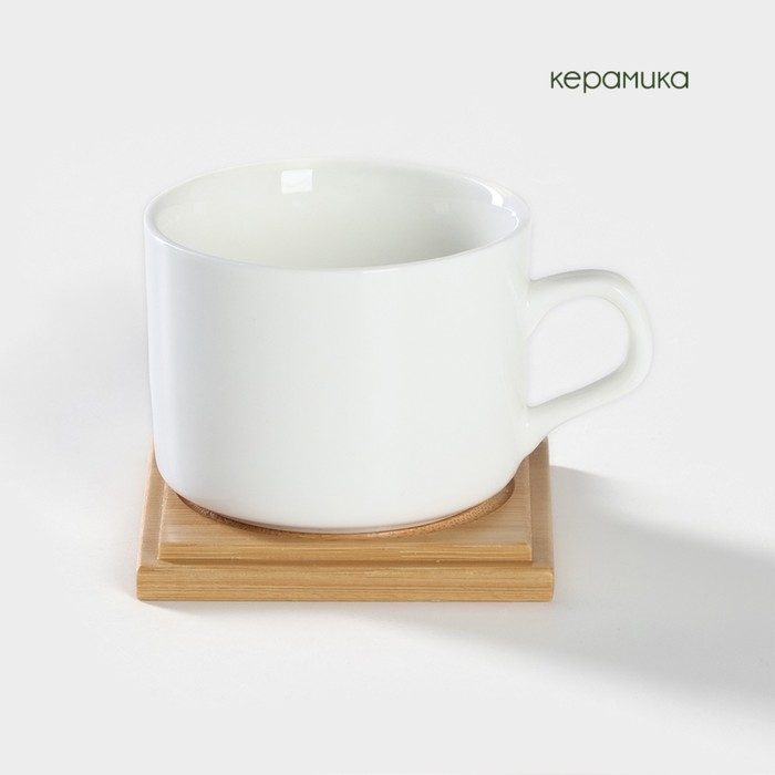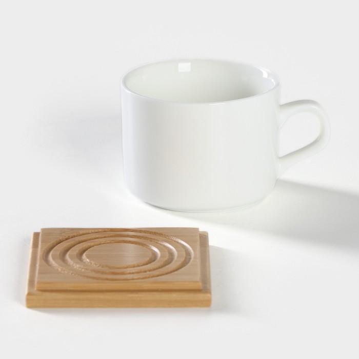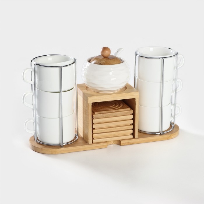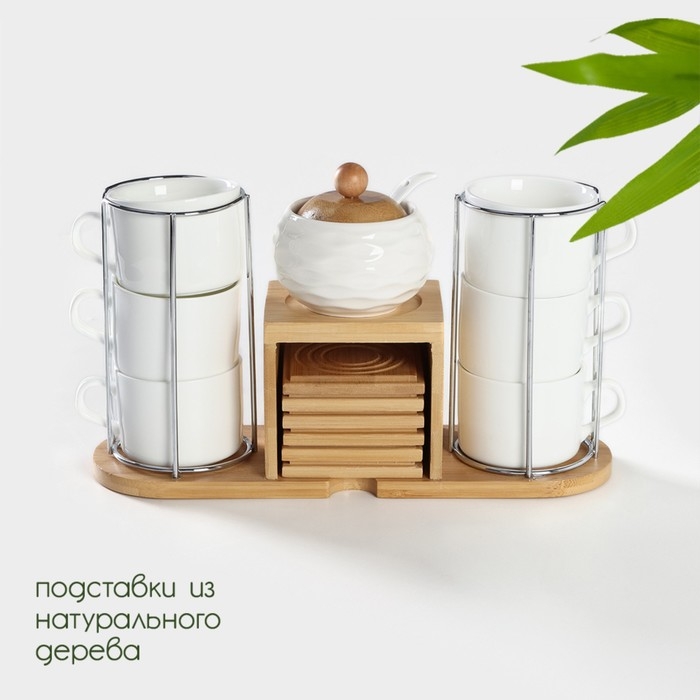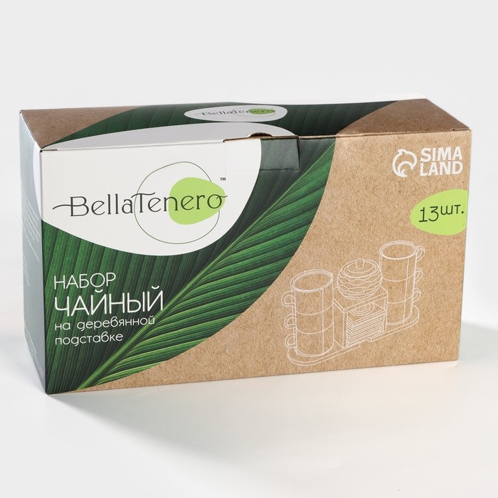 Набор чайный керамический на деревянной подставке BellaTenero, 13 предметов: 6 чашек 150 мл, сахарница с ложкой 200 мл, 6 подставок, цвет белый