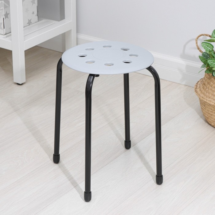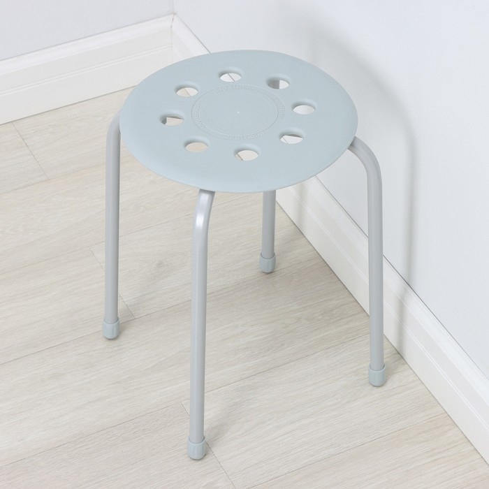Табурет на четырёх опорах с пластиковым сиденьем. Материал сиденья лёгкий в чистке.