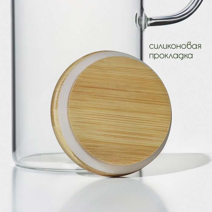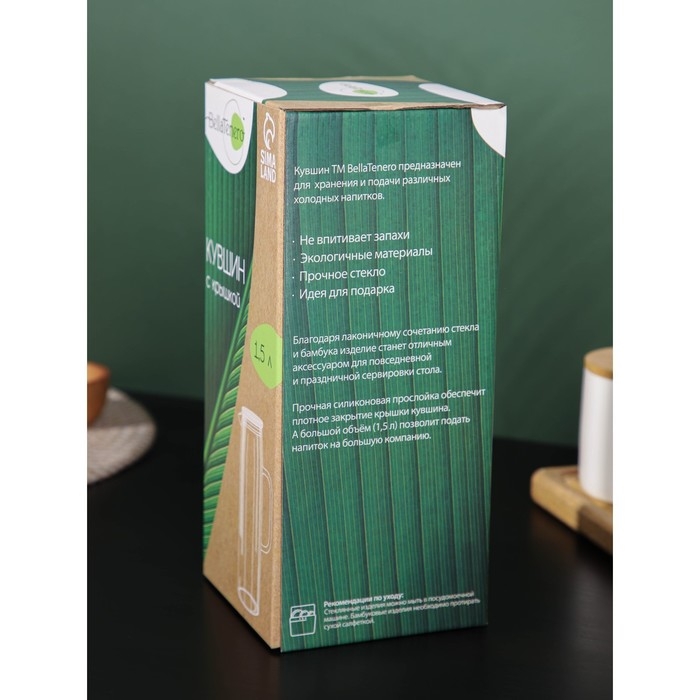 Кувшин для воды стеклянный с бамбуковой крышкой BellaTenero «Эко», 1,3 л, 14×9×27 см