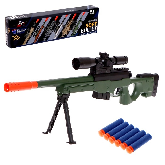 Снайперская винтовка AWM — позволит ребёнку почувствовать себя настоящим снайпером! Детское оружие оснащено оптическим прицелом, стреляет мягкими пулями, которые не причиняют вреда, обеспечивая безопасность во время игры.