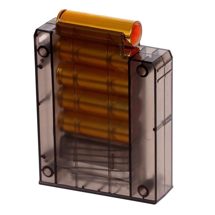 - Процесс зарядки игрушечной винтовки приближен к реальному. Чтобы зарядить оружие, вставьте пули в гильзу, а затем в обойму.