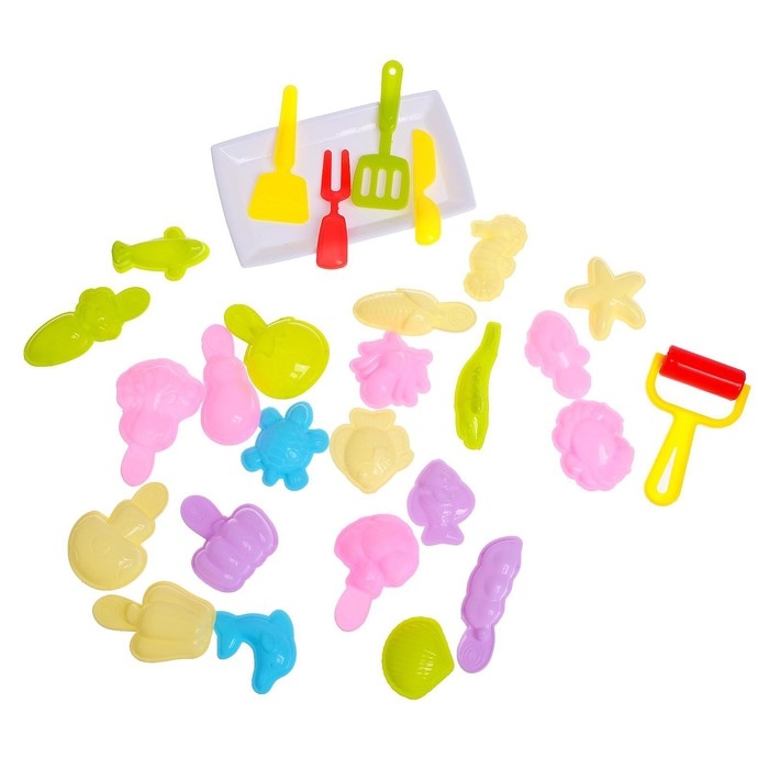 В набор для творчества входит всё необходимое для лепки из пластилина. Вы найдёте интересные инструменты, формочки и разноцветную массу.