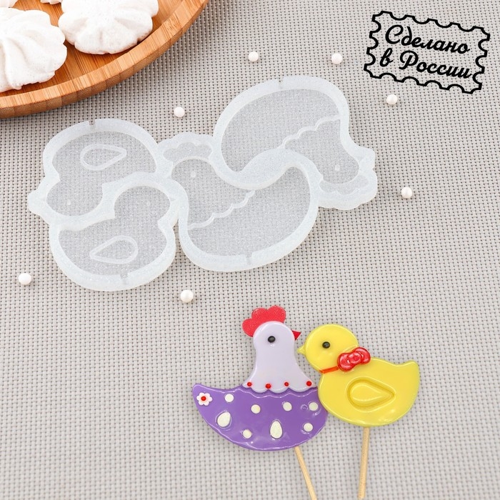 Силиконовый молд для леденцов и шоколада «Курочка и цыпленок», 7×6, 5,5×5 см, цвет прозрачный