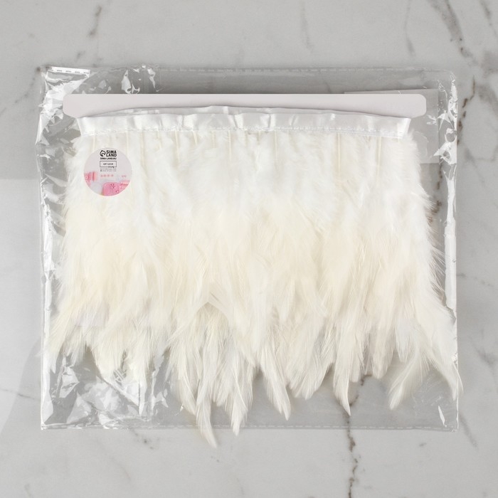 Тесьма с перьями петуха, 10-15 см, 5 ± 0,5 м, цвет белый