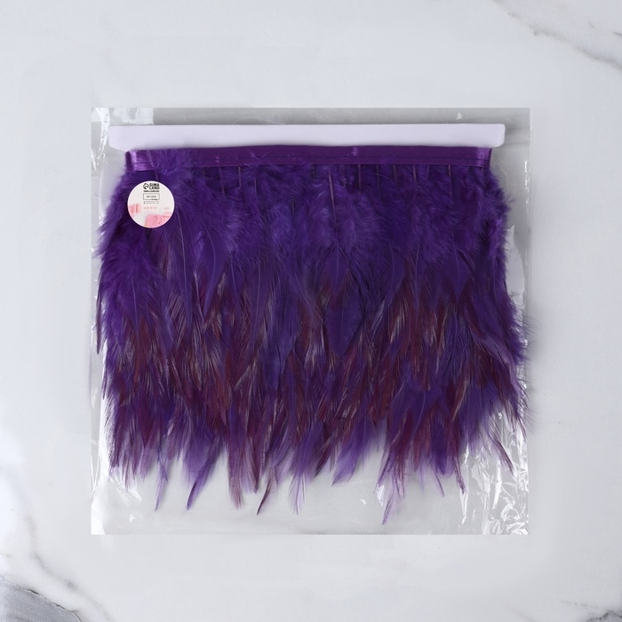 Тесьма с перьями петуха, 10-15 см, 5 ± 0,5 м, цвет фиолетовый