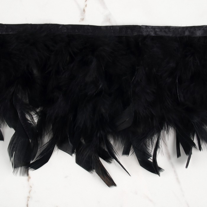 Тесьма с перьями индюка, 13-17 см, 5 ± 0,5 м, цвет чёрный