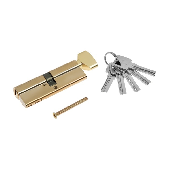 Цилиндровый механизм, 90 мм, с вертушкой, перфор. ключ, 5 ключей, цвет золото