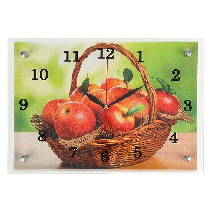 Часы-картина настенные, интерьерные "Корзина с яблоками", бесшумные, 25 х 35 см