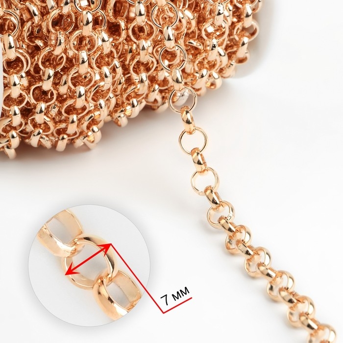 Цепочка для сумки, железная, d = 7 мм, 10 ± 0,5 м, цвет золотой