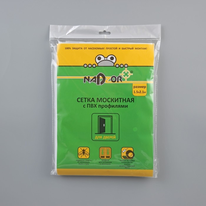 Сетка москитная с крепежом и ПВХ профилями для дверных проемов, 1,5×2,1 м, в пакете, цвет белый