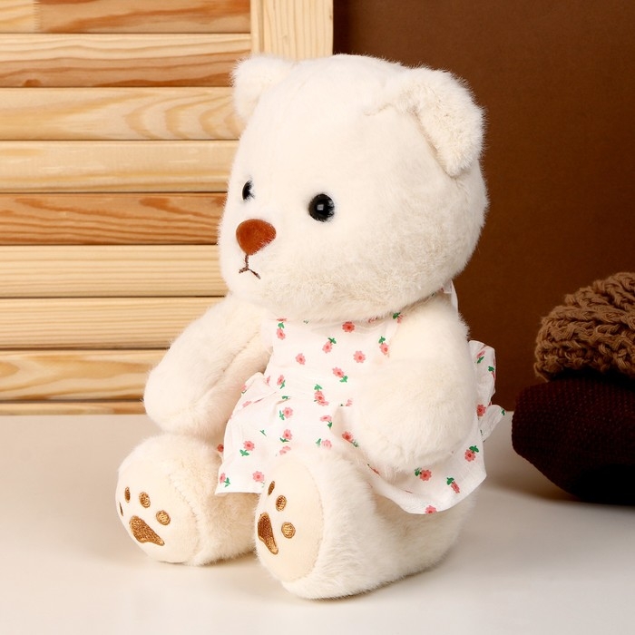 Мягкая игрушка «Медведь» в платье, 21 см, цвет белый