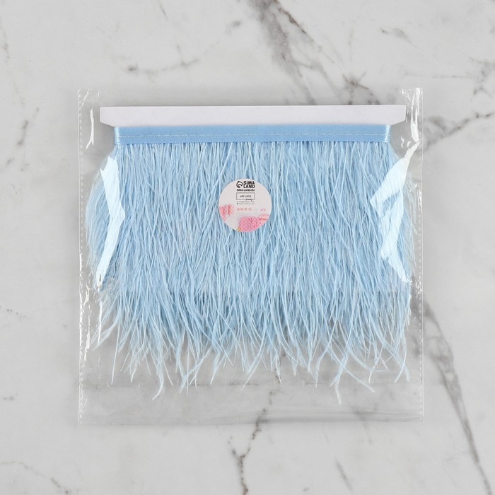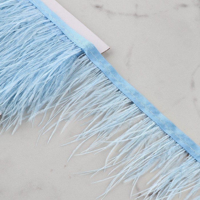 Тесьма с перьями страуса, 8-10 см, 5 ± 0,5 м, цвет голубой