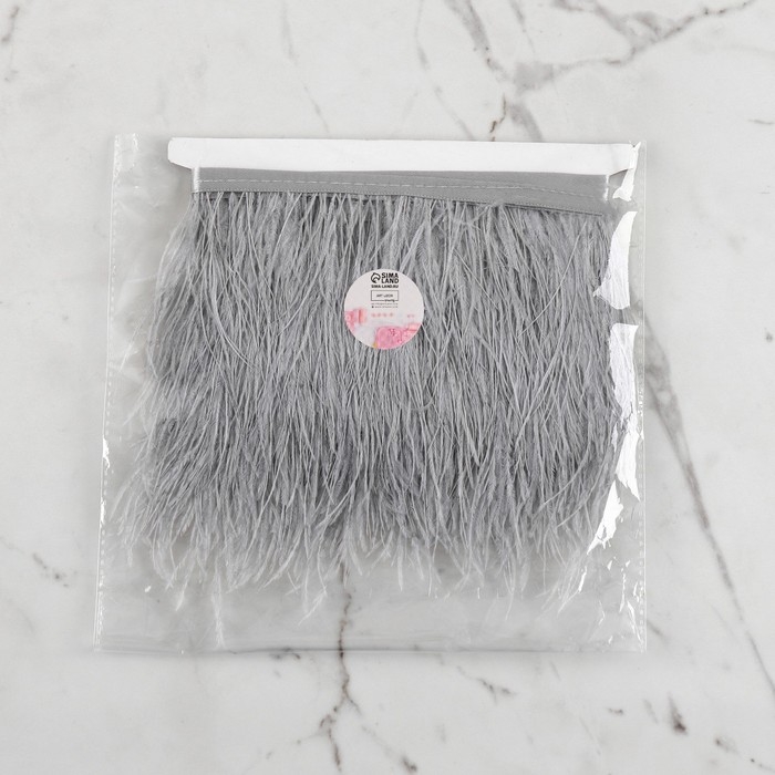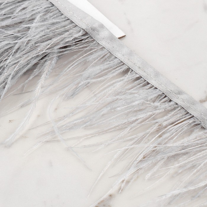 Тесьма с перьями страуса, 8-10 см, 5 ± 0,5 м, цвет светло-серый
