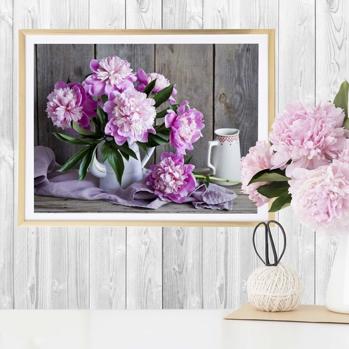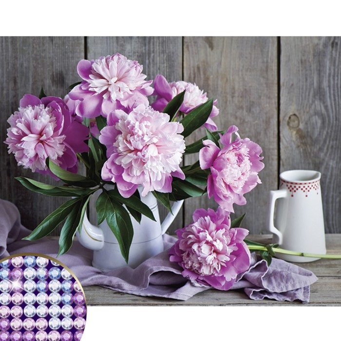 Алмазная мозаика с частичным заполнением на холсте «Пионы», 40 х 30 см
