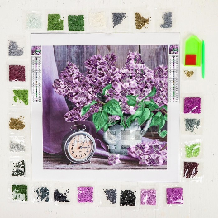 Алмазная мозаика с частичным заполнением на холсте «Сирень», 37 х 37 см