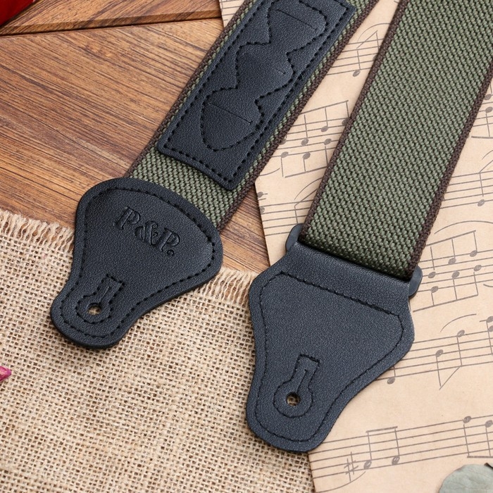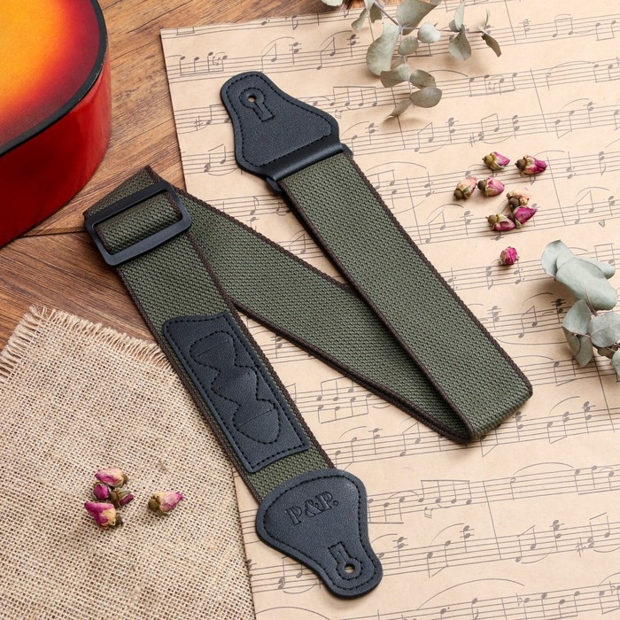 Ремень для гитары Music Life, зеленый с кармашком для медиаторов, 90-145 см, ширина 5 см