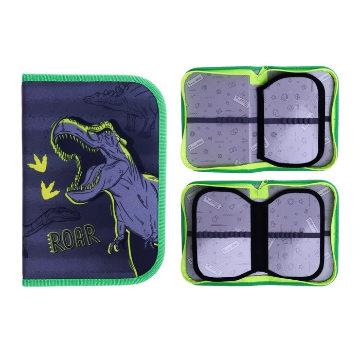 Пенал 3 секции, вкладка внутри, 140 х 210 х 40 мм, тканевый, Calligrata TOP Block "Динозавр"