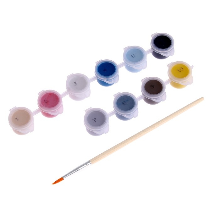 - В набор входят все необходимые оттенки красок. Баночки пронумерованы.