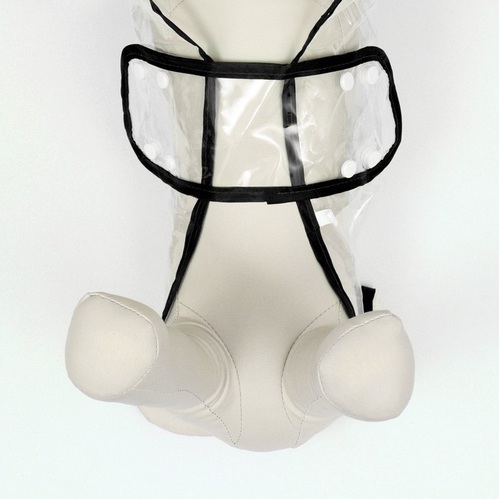 Капюшон дождевика защищает голову от дождя и ветра, и может быть регулируемым для лучшей посадки на голове, на спинке дождевика есть отверстие для поводка.