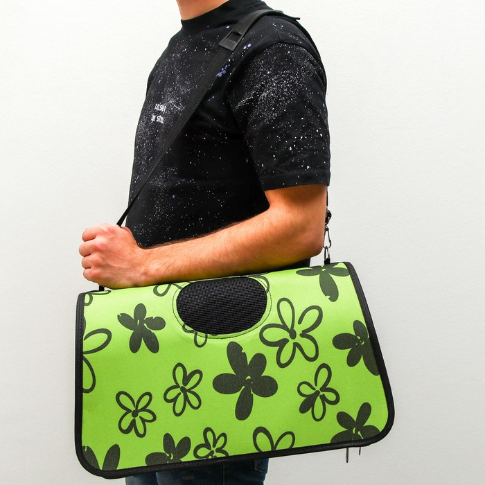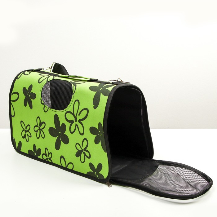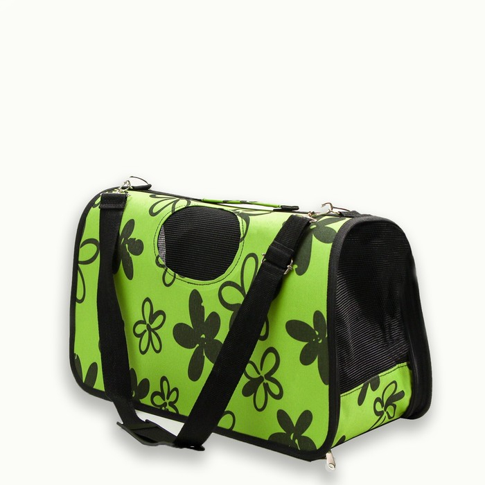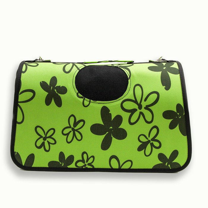 Сумка - переноска для животных "Цветы", зелёная, размер М, 40 х 21 х 27 см