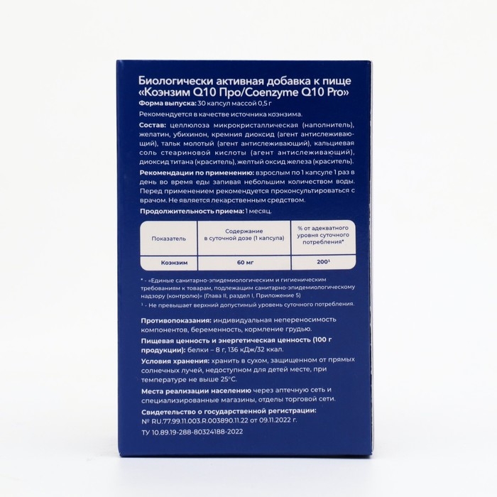 Способствует выработке энергии на клеточном уровне. Энергетические антиоксидантные свойства Коэнзима Q10 поддерживают иммунную функцию, укрепляют сердечно-сосудистую систему, способствуют повышению жизнеспособности многих систем организма, особенно при умственной или физической нагрузке, стрессе или в пожилом возрасте.
