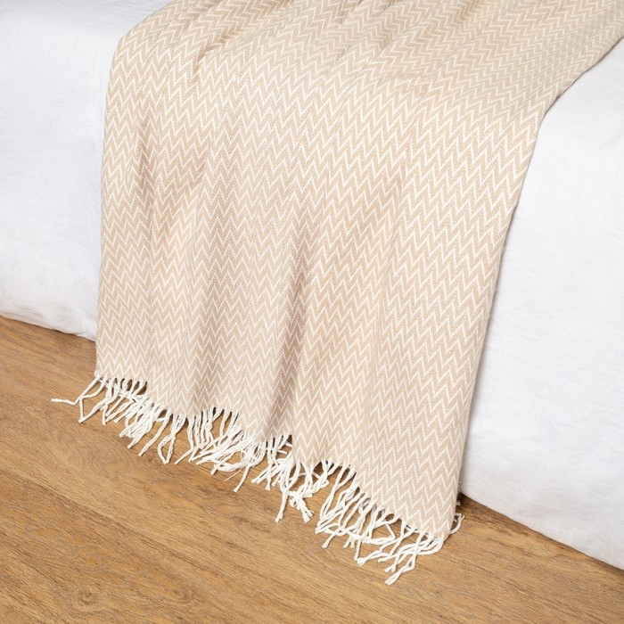 Плед Валенсия 140х200см, белый/песочный, хлопок 50%, полиэстер 30%, пан 20%