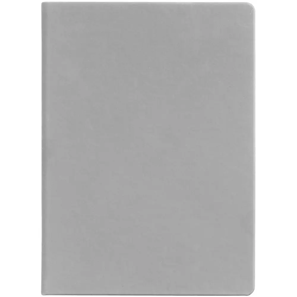 Ежедневник с твердой обложкой и тонированным обрезом, выполнен из материала Soft Touch, серый СС, дополнен ляссе в цвет обложки.