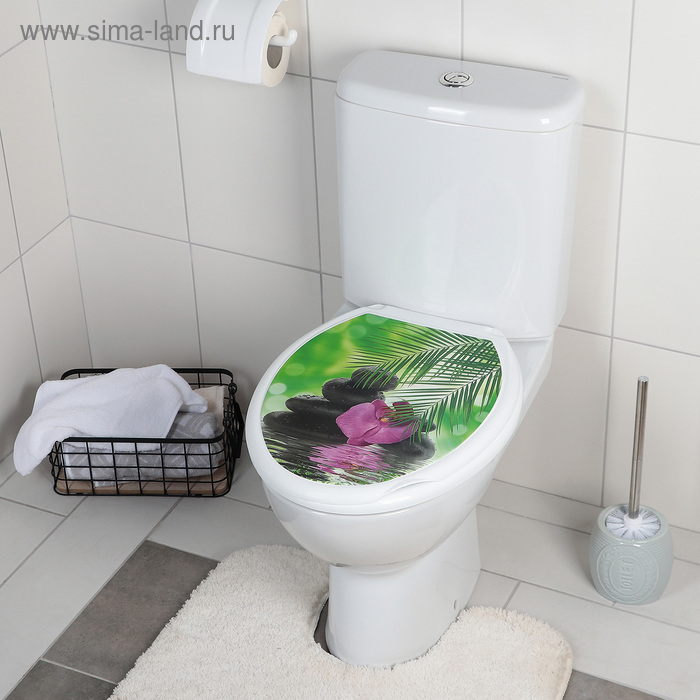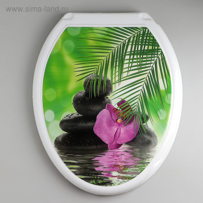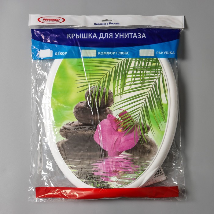 Сиденье для унитаза с крышкой Росспласт "Декор. Орхидея",44,5х37см, цвет белый