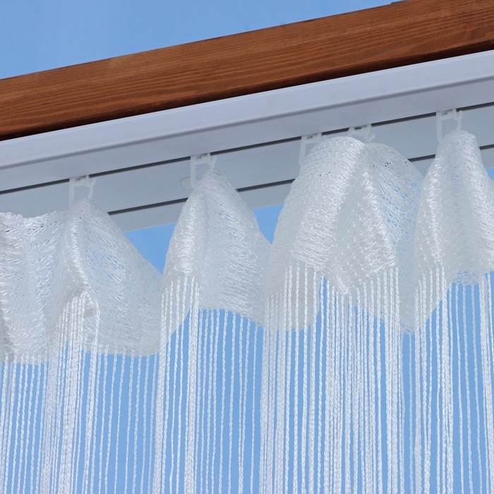 - Нитяные шторы подходят для декорирования различных помещений – гостиной, кафе, офиса, спальни и даже кухни.