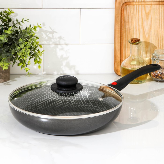 Cковорода Forever, d=26 см, съёмная ручка, стеклянная крышка, антипригарное покрытие, цвет черный
