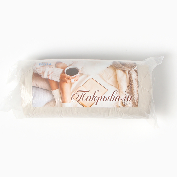 Покрывало 140х215см, слоновая кость, синтепон 100г/м, микрофибра 80г/м, 100% полиэстер