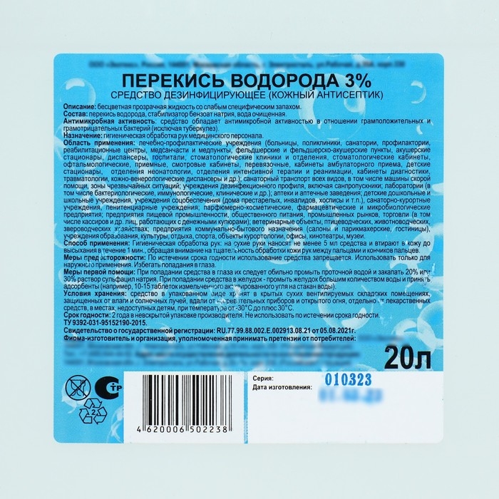 Перекись водорода раствор 3% средство дезинфицирующее, 20 л