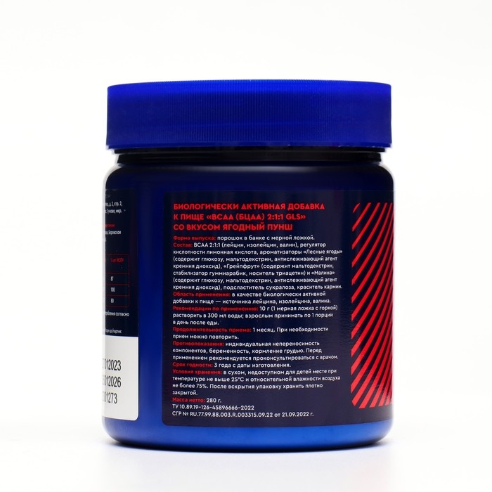 BCAA 2:1:1 аминокислоты для набора массы GLS со вкусом ягодного пунша, 280 г