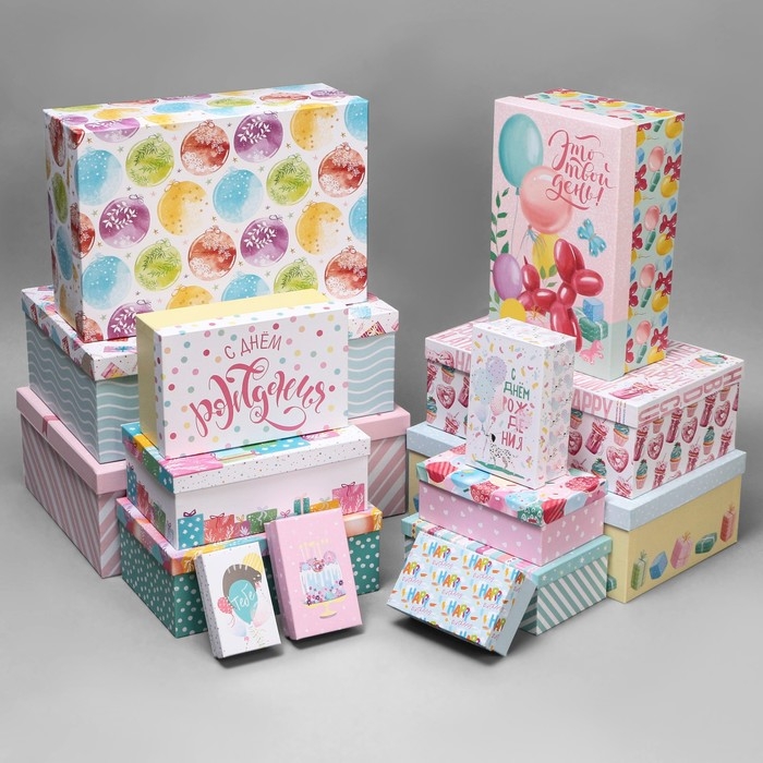 Набор коробок 15 в 1, упаковка подарочная, «С днём рождения», 12 х 7 х 4 см - 44 х 31 х 15 см