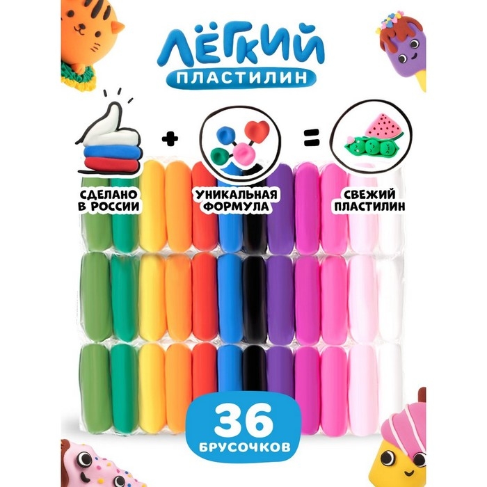 Лёгкий пластилин «Лепи Легко», набор 36 шт., 12 цв.