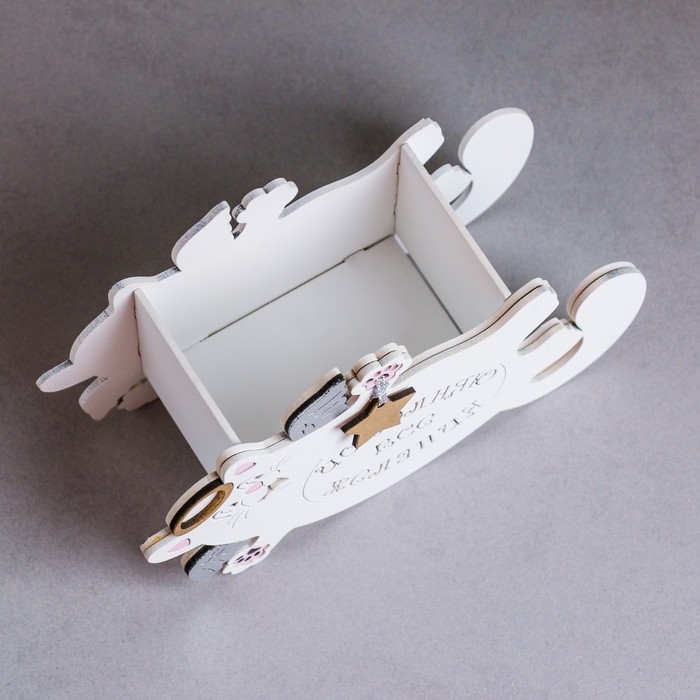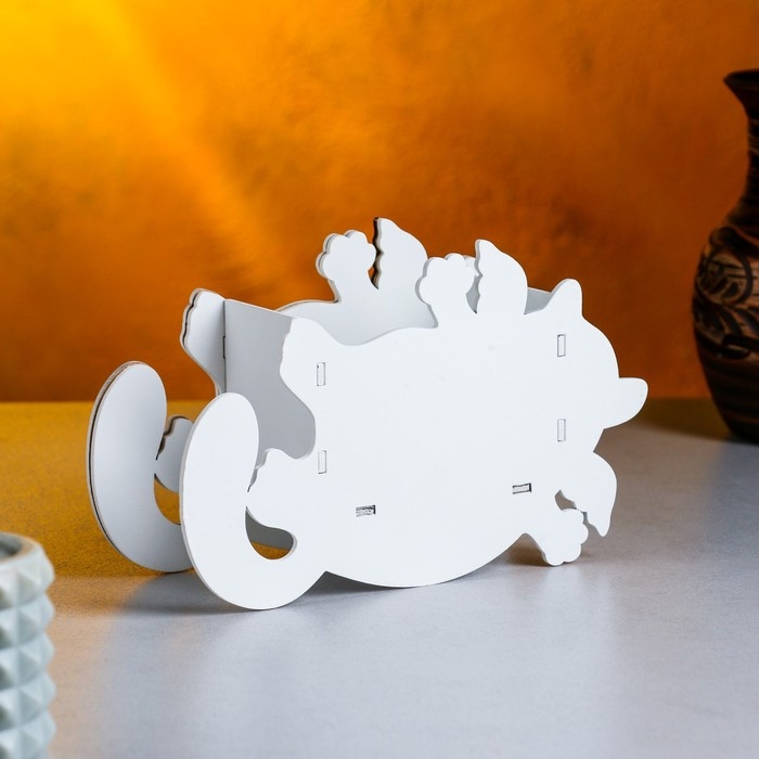 Кашпо деревянное "Кот, исполняющий желания" малый, 19,5х7,5х12,5 см, дуб, белый