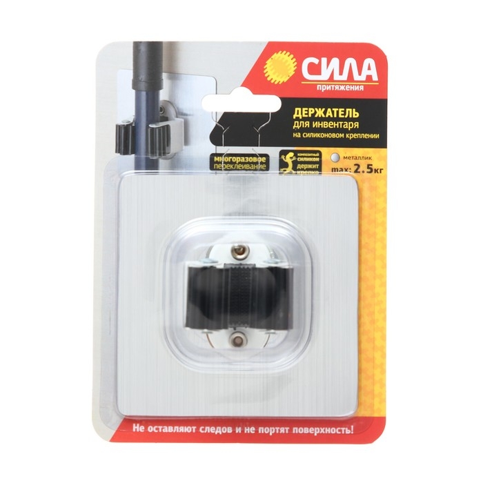 Держатель для инвентаря СИЛА SSH10-S1S-12 на композитном силиконовом креплении. Многоразовый фиксатор для швабр, щеток, совков, метел, грабель, веников крепко держит ручку бытового инвентаря. Эффективный способ избежать сверления стен или мебели. При правильном приклеивании силиконовый крючок будет надежно держаться на стене или любой другой гладкой поверхности. Удерживает предметы весом до 2,5 кг.