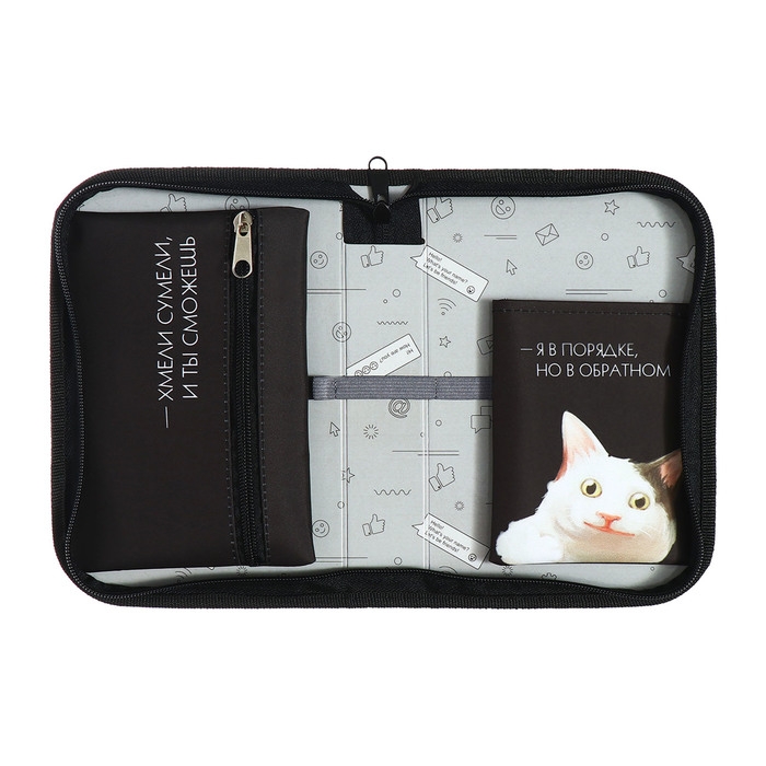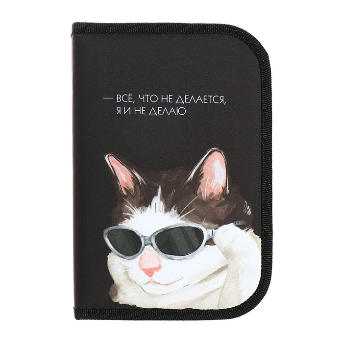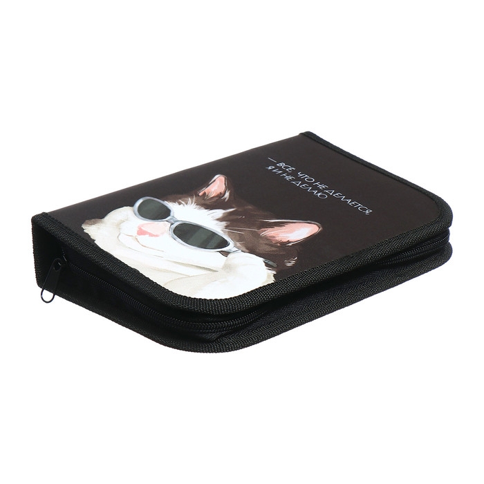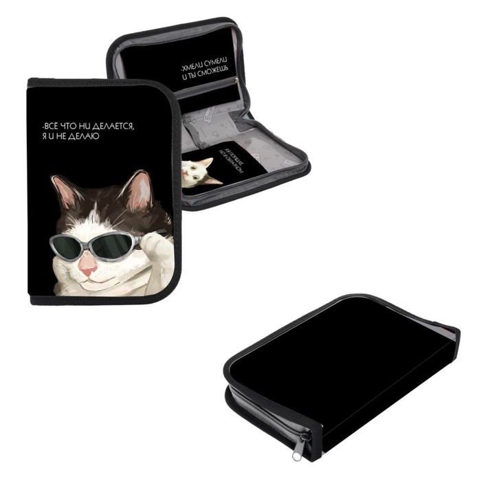 Пенал 1 секция 140 х 210 х 40 мм, откидной карман и косметичка, тканевый, Calligrata TOP Content "Коты мемы"