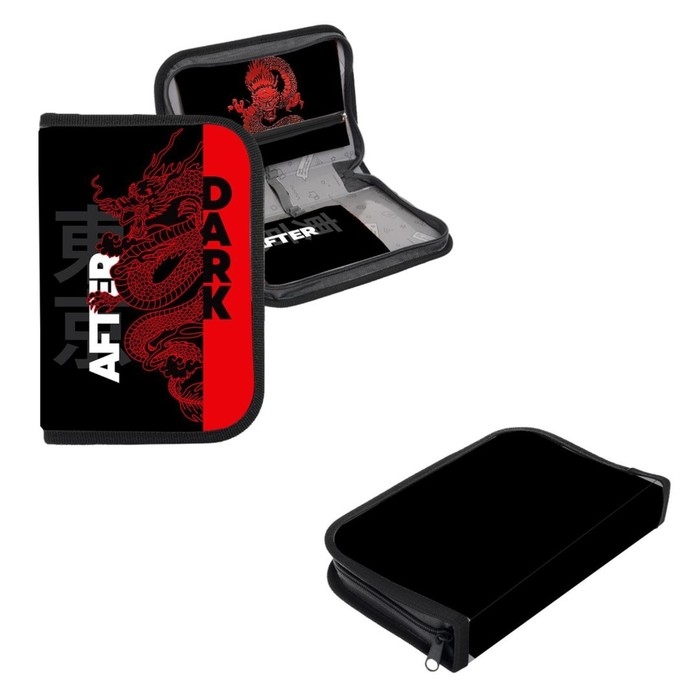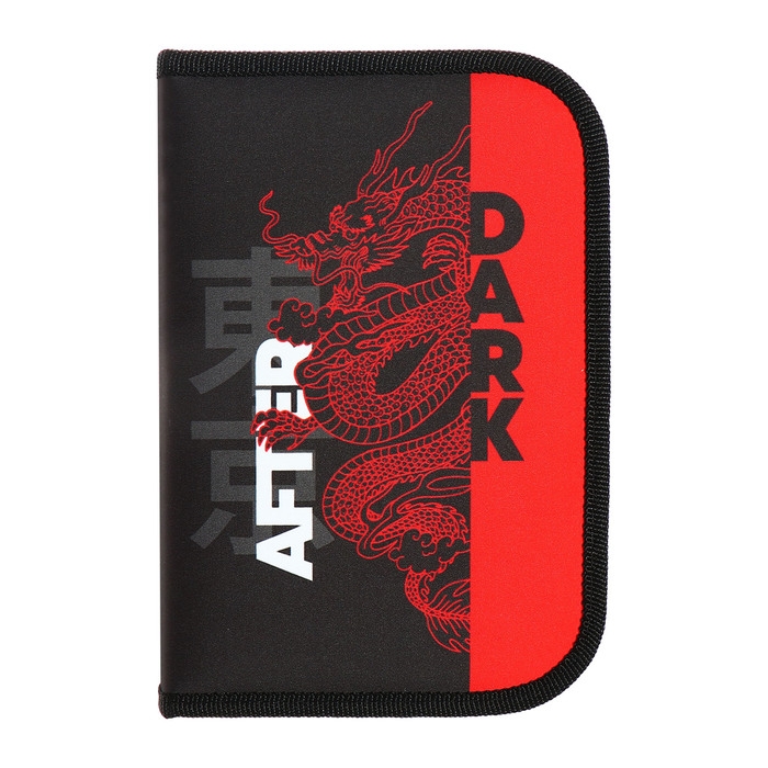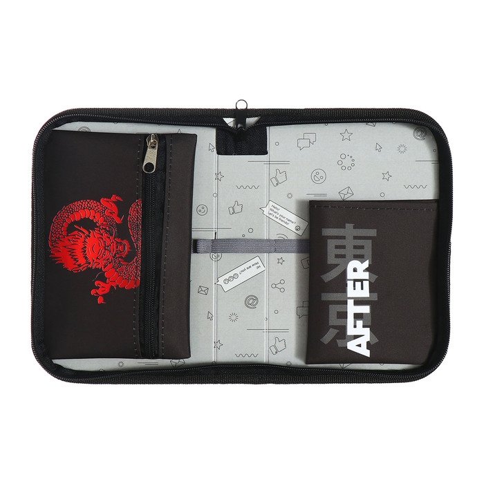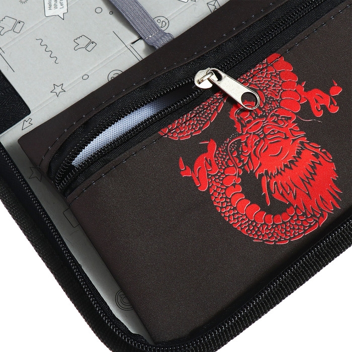 Пенал 1 секция 140 х 210 х 40 мм, откидной карман и косметичка, тканевый, Calligrata TOP Content "Дракон"