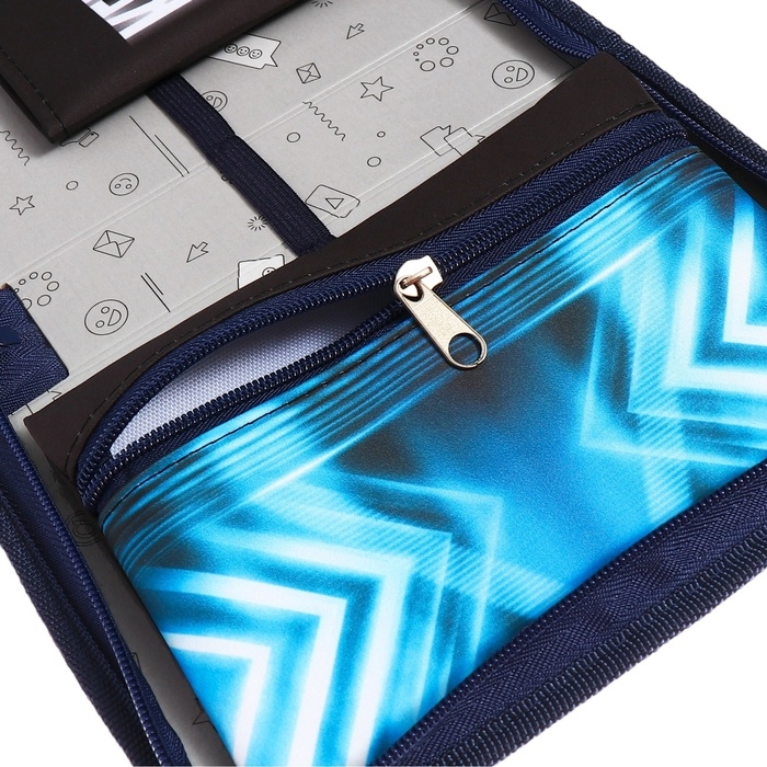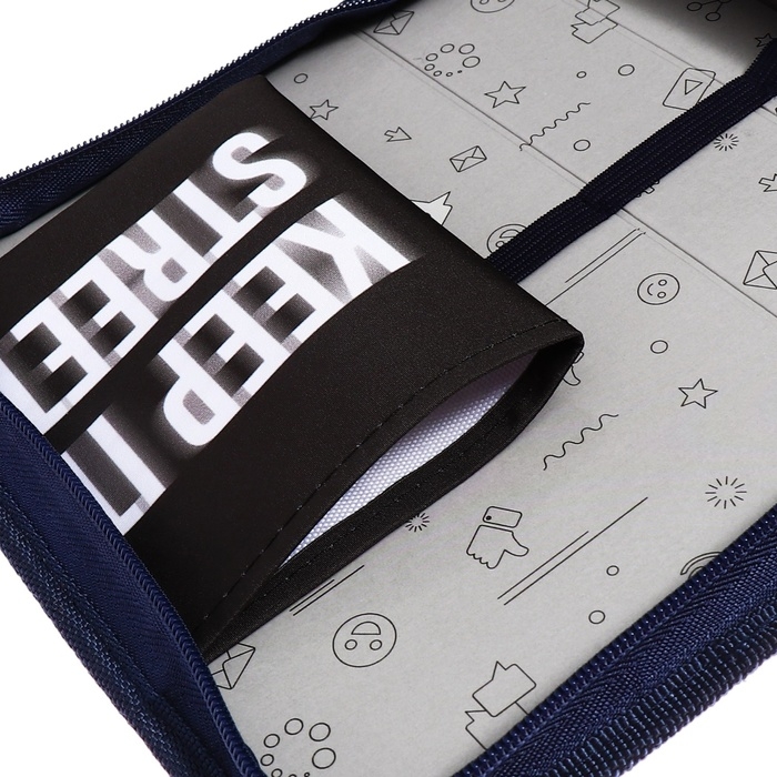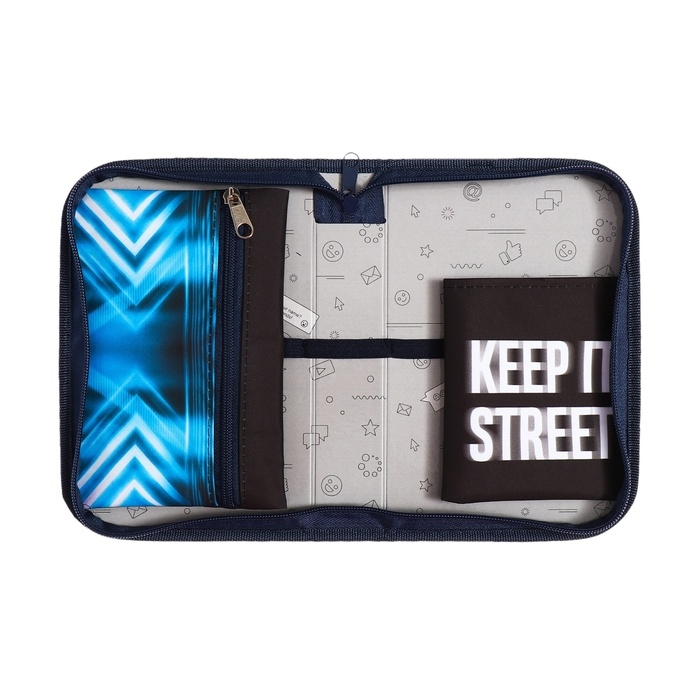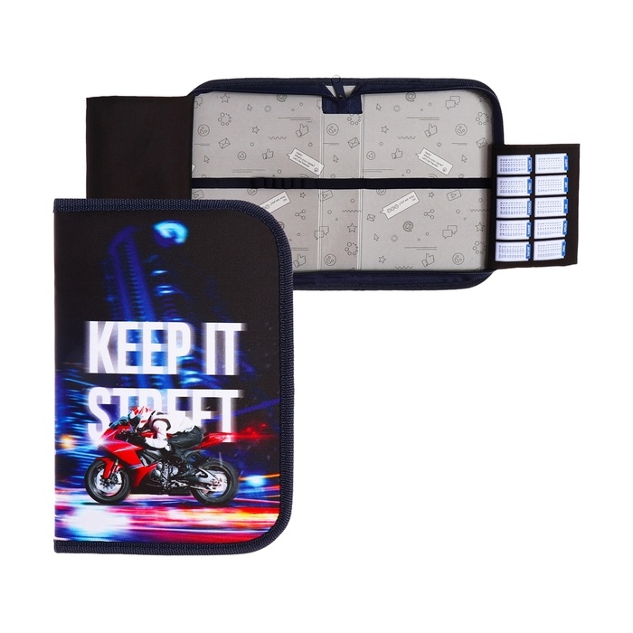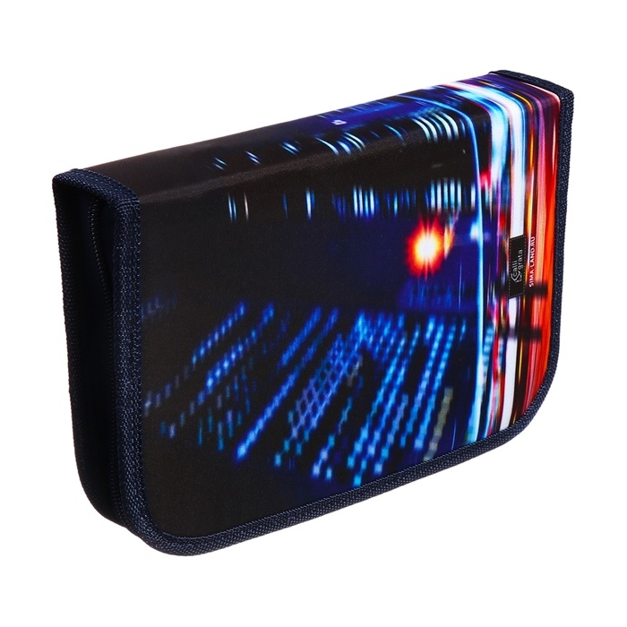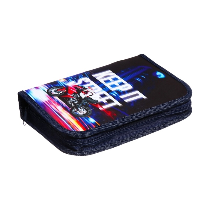 Пенал 1 секция 140 х 210 х 40 мм, откидной карман и косметичка, тканевый, Calligrata TOP Content "Мото"