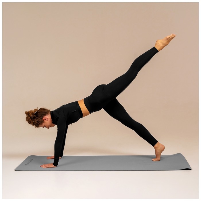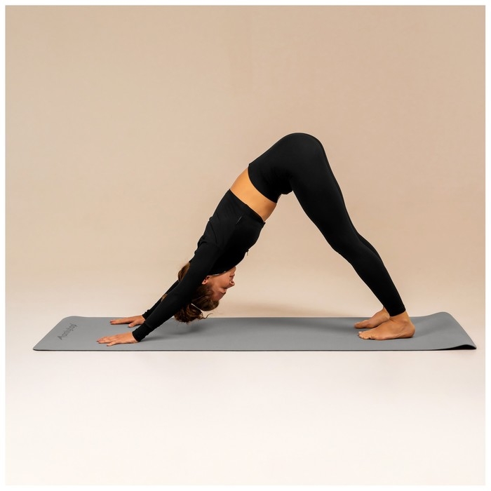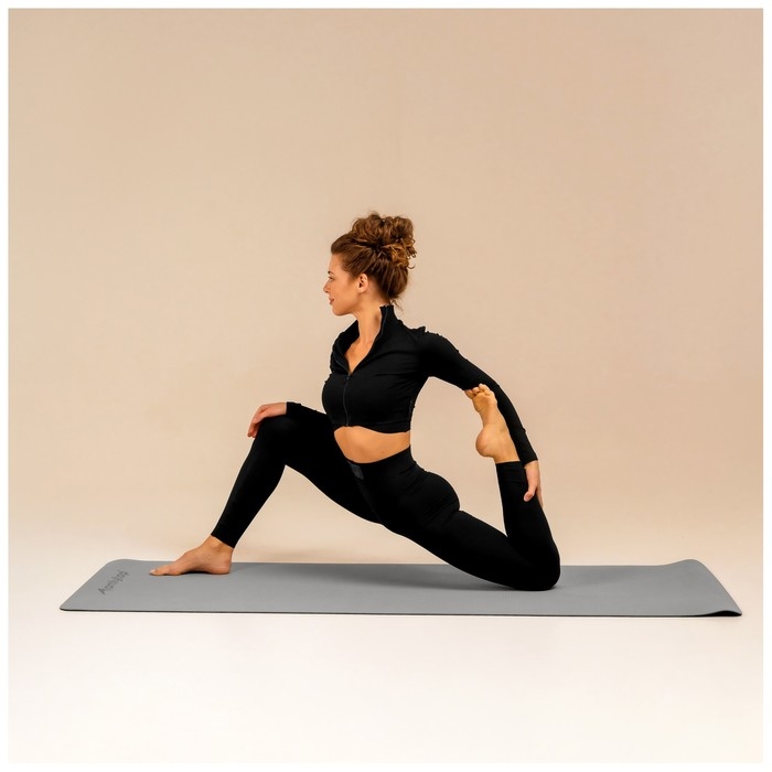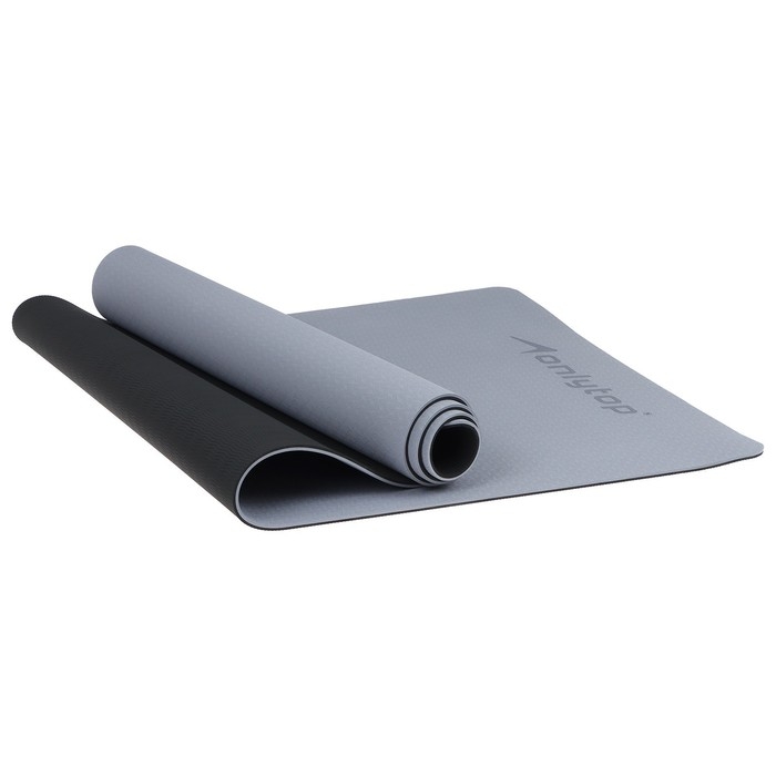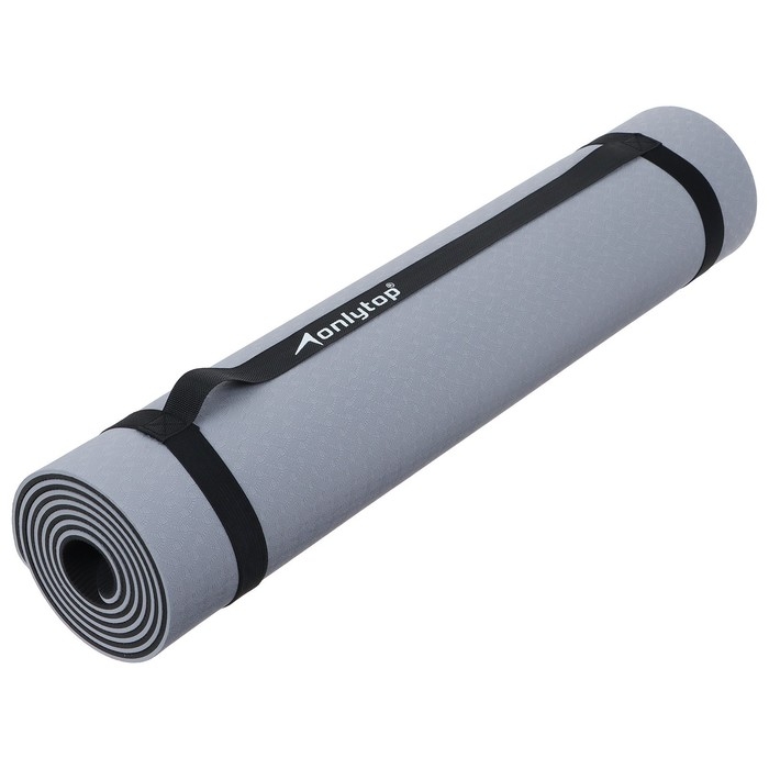 Коврик для фитнеса и йоги ONLYTOP, 183х61х0,6 см, цвет серый/чёрный